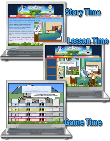 Leonardo, Athena, and friends teach the lessons of the chapter. Included are video tutorials featuring a teacher and students demonstrating these lessons. Children may also play simple games that serve as great assessment tools for children, parents, and teachers.